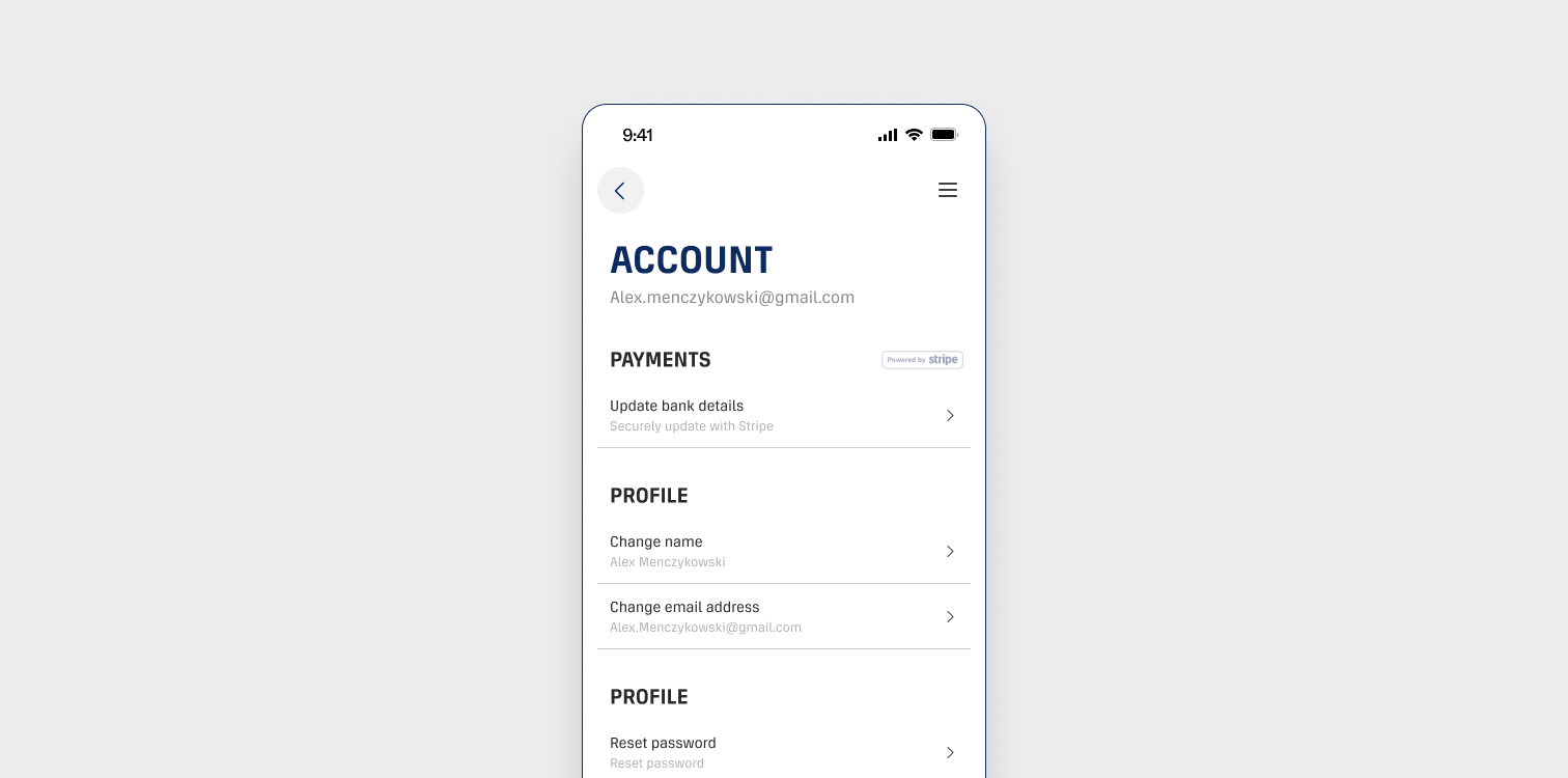 - In the Account section you’ll see a ‘payments’ section. When you click on ‘update bank details’, you’ll be redirected to stripe - our payment provider - to enter and confirm your details for royalty payment at the end of each accounting period.